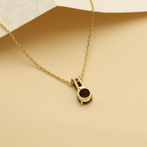 Turn heads with this striking pendant necklace featuring a deep blood red, round-cut garnet, securely held in a classic prong setting. The vibrant gemstone radiates sophistication and charm, making it perfect for both everyday wear and special occasions. Crafted in high-quality 925 sterling silver, the pendant is paired with a sleek chain for a complete, ready-to-wear look. Whether it’s a January birthstone gift or a romantic gesture, this garnet pendant speaks volumes with its fiery hue and refined design.
